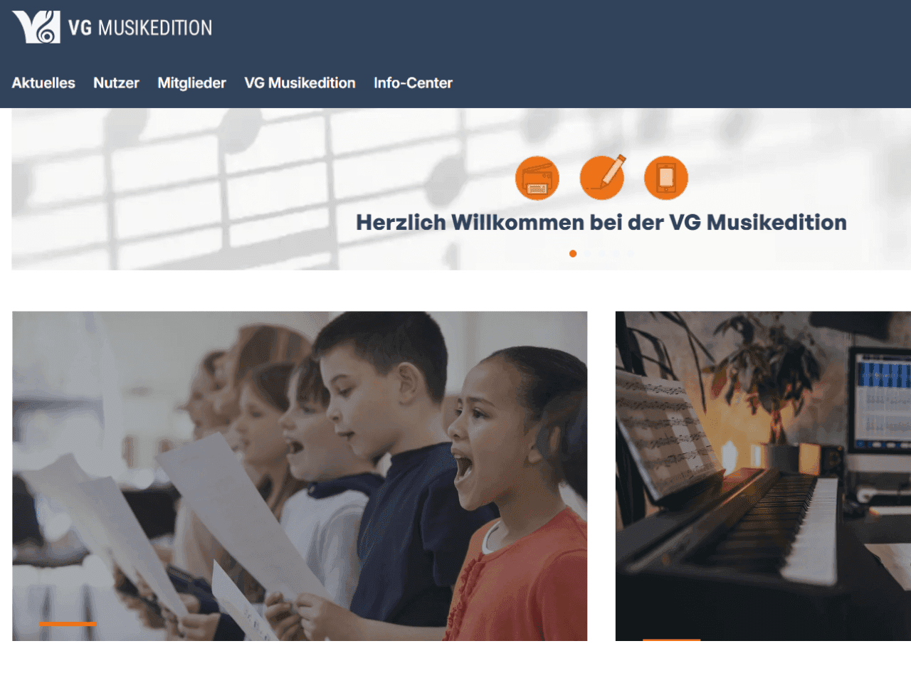 Im Zentrum der neuen Website stehen die vier Hauptmenüs „Nutzer“, „Mitglieder“, „Info-Center“ und „VG Musikedition“, in denen alle relevanten Informationen und Services themenorientiert und übersichtlich geordnet einfach zugänglich sind. Dazu gibt's viele News zu aktuellen und wichtigen Themen.